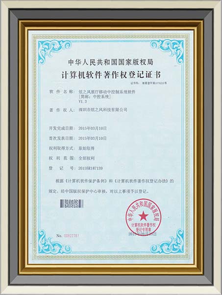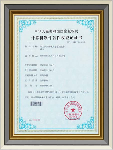 • 2013年12月30日,炫之風獲得多媒體展示系統軟件登記書