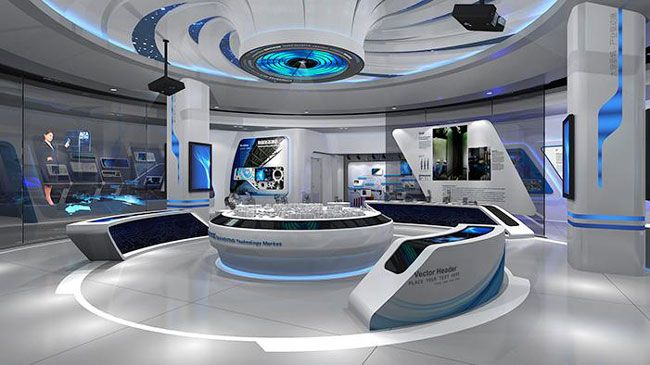 虛擬空間也可以稱為“心理空間”,因為展示的虛擬空間范圍沒有十分完備的隔離形態(tài),較強的限定度嚴重缺乏,都只是靠一部分的形態(tài)和色彩的啟示,是依靠聯(lián)想和“視覺完形性”來劃定的空間,做虛擬空間的理由就是真實性,讓客戶更真實的體驗企業(yè)的高科技展示。