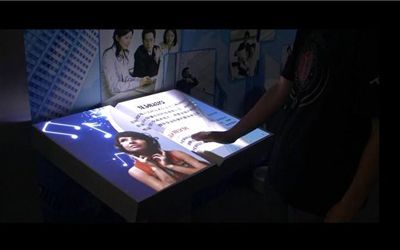 桌面互動投影是通過投影設備將多媒體影像投影到桌面上,這就有點類似于好萊塢大片中人們在虛擬的屏幕上操作電腦手機一樣,效果十分炫酷,科技感十足。