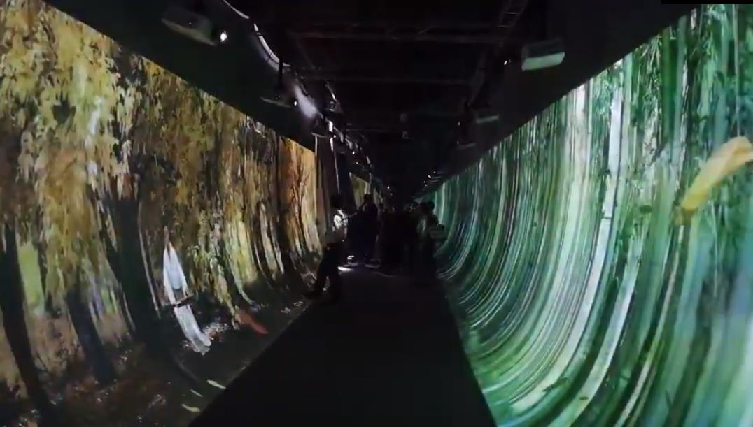 采用高精度的投影設(shè)備,將數(shù)字內(nèi)容投影到走廊兩側(cè)活三面(含地面),整體沉浸感非常強(qiáng),結(jié)合互動感應(yīng)裝置,可以帶來更好的體驗。