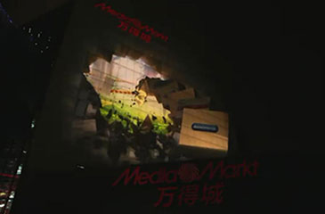 這項目利用了3D投影的特效將萬得城的樓面瓦塊逐個粉碎、逐步坍塌,隨即不同的電子產品,從洗衣機到iPhone,一一從磚墻中爆裂出來,通過拼...