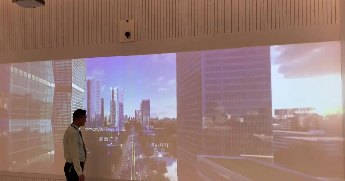 實物識別技術結合VR全景漫游,通過操控實物識別桌上的感應模塊,模塊位于戶型圖之上時,大屏上展示出戶型對應位置的VR全景圖,通過操控感...