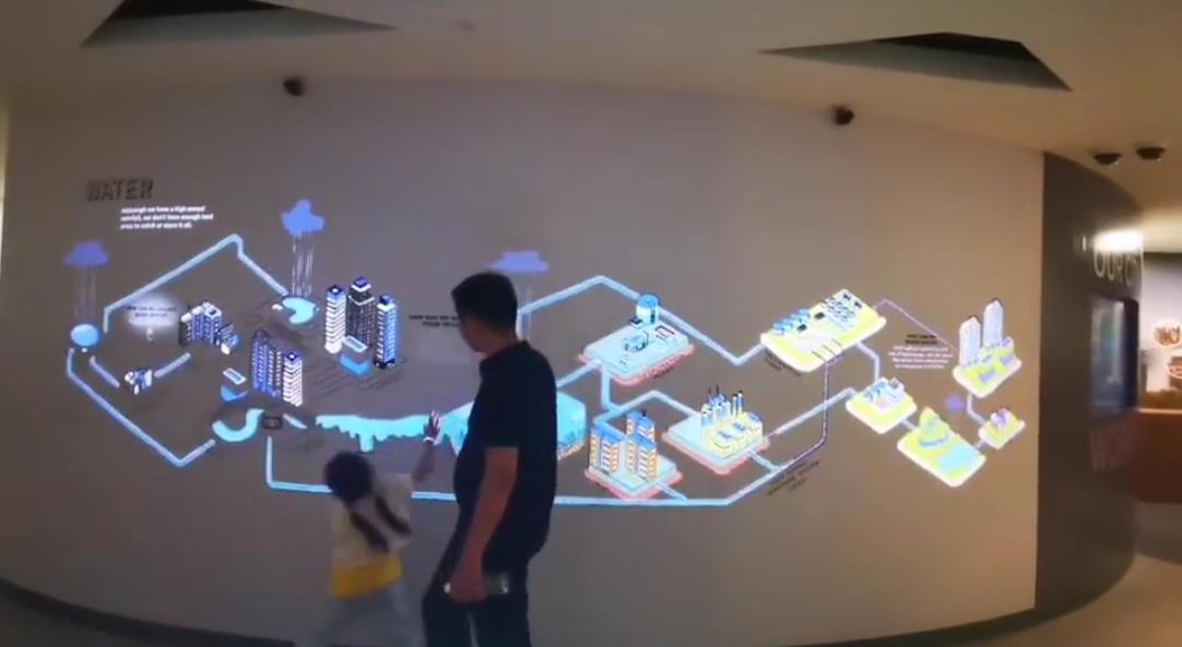 通過投影將數字內容投影到墻面上面,并且參觀者可以通過觸摸來跟墻面進行交互,通過觸摸可以改變墻面上投影內容的變化,整體交互體驗非...