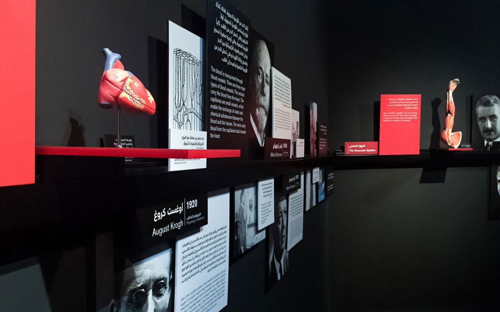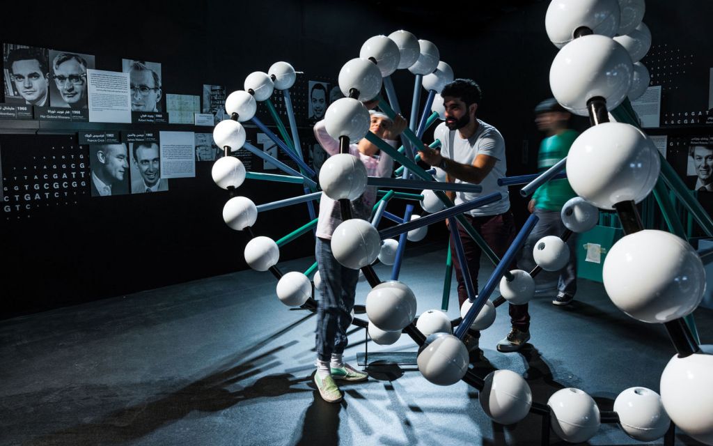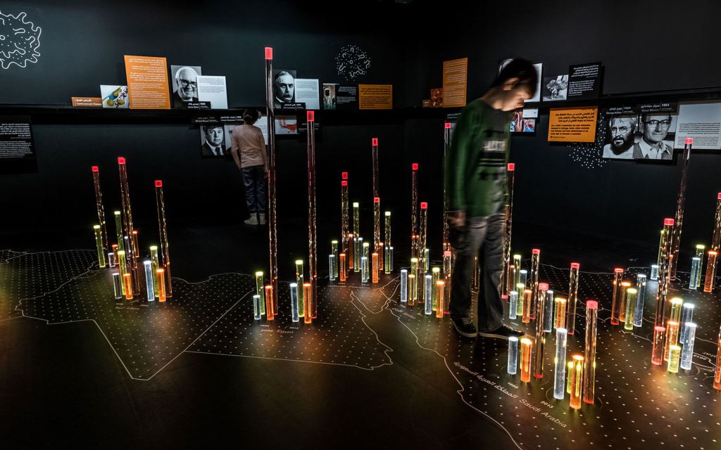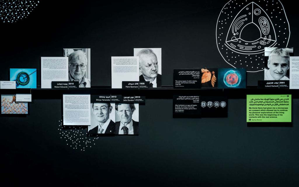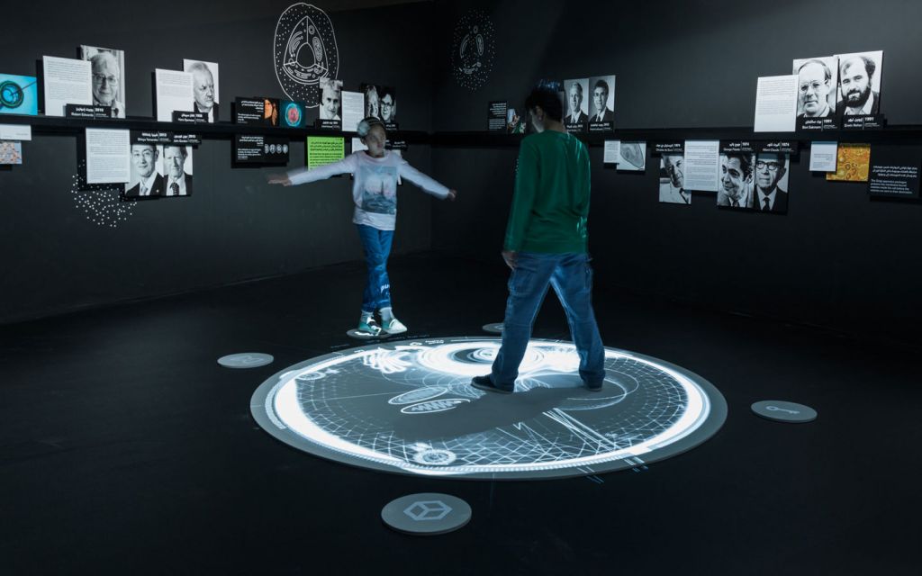 在迪拜兒童城的展覽“探索生命 - 諾貝爾生理學與醫(yī)學獎”帶領(lǐng)著游客們進入醫(yī)學界的趣味之旅:它涵蓋了疾病及其治療方法、解剖學、細胞、DNA和顯微學等方面。青少年游客可以在此組裝一個巨大的DNA模型,也能通過地面上的投影互動方式探索細胞,同時也可以在多媒體桌上放大探索人體內(nèi)部。這些空間裝置都伴隨著諾貝爾獎獲得者的貢獻以及名言的圖文說明。序廳區(qū)按時間順序概述了諾貝爾獎歷史發(fā)展,以及阿拉伯醫(yī)學的悠久傳統(tǒng)。
