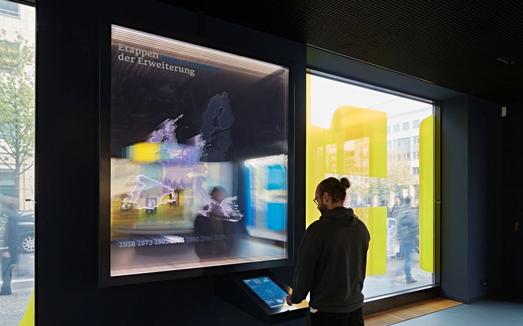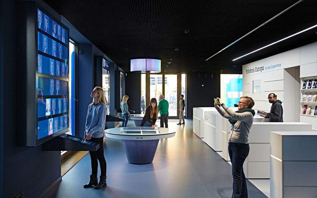 靠近勃蘭登堡城門,位于歐洲大廈內(nèi)的常設(shè)展覽提供了有關(guān)歐盟成員、歷史和政治的直接體驗。圓形媒體站和360度影院為本展覽的特點。歐洲議會和歐盟委員會的信息通過富有描述性、透明性、知識性和豐富體驗的方式顯示給參觀者,并將這些信息在多達24種語言,也就是歐盟的24個官方語言,呈現(xiàn)給大家。看似遙遠(yuǎn)的政治事務(wù)由此從空間和語言方面更接近了人們。